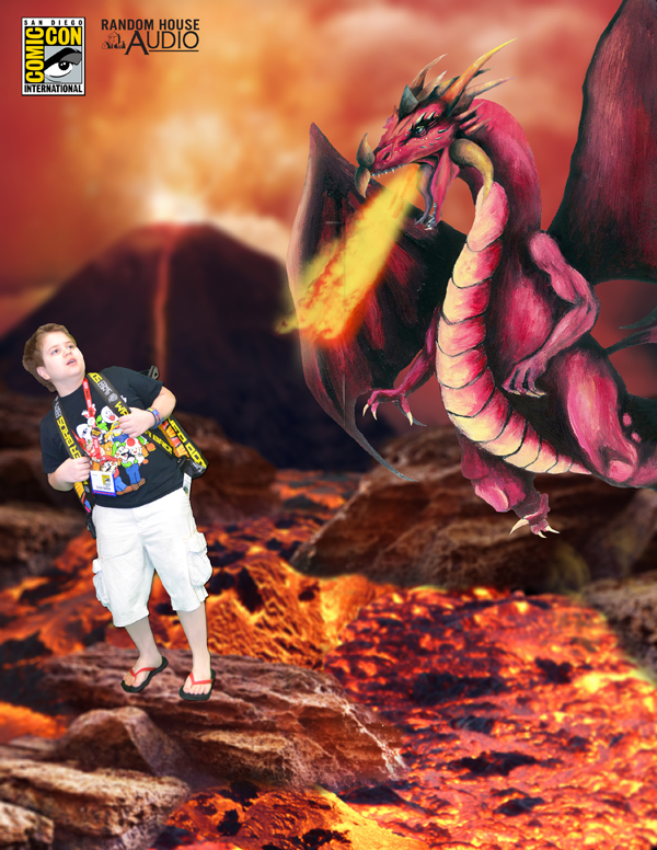 Comic-Con 2011 Flashback: at the Random House Audio booth, you could take a photo with a fire-breathing dragon. Mattie was all for it and this is the souvenir photo they gave us. They gave away a lot of fun freebies too.