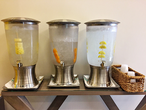 The SpringHill Suites San Diego Downtown/Bayfront offers a free breakfast full of options. The cool thing about this hotel is that there are two places to enjoy breakfast — you can sit inside in their usual breakfast dining room, which offered the full selection of breakfast foods. Or you can sit outside on the balcony which overlooks the bay (weather permitting). They set up a buffet on the balcony with plenty of items.