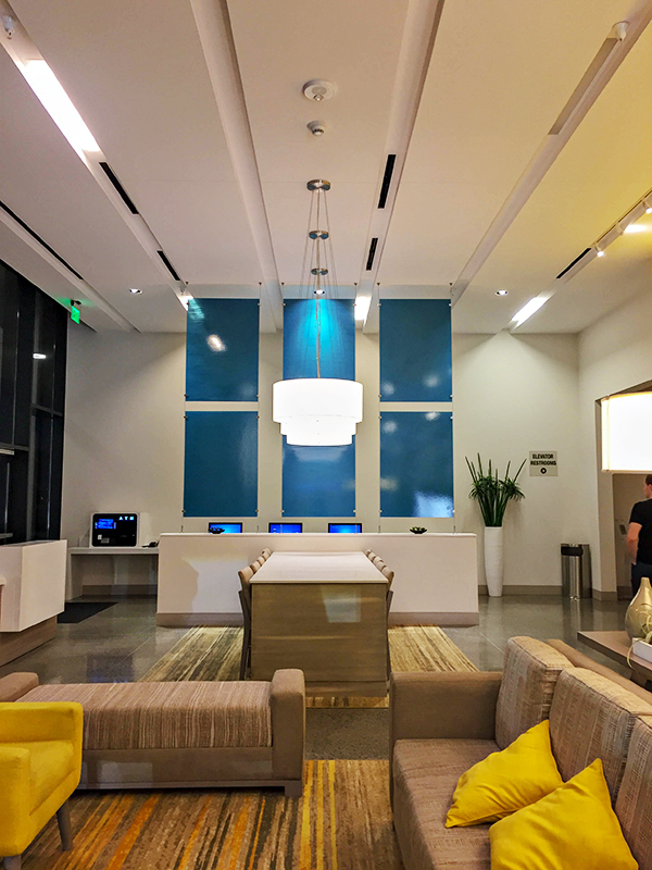 The SpringHill Suites San Diego Downtown/Bayfront Hotel is a modern hotel, conveniently located in Downtown San Diego. While this hotel is “downtown” it’s about 1 mile from the San Diego Convention Center (so 1 mile from Comic-Con) and the Gaslamp Quarter. Depending on your own personal preference, this could be a good or bad thing. For our family, we usually prefer being a bit away from the heart of downtown San Diego, which is very busy and tends to have a party-like atmosphere at night during Comic-Con. So, you aren’t super close, but you aren’t far away either.