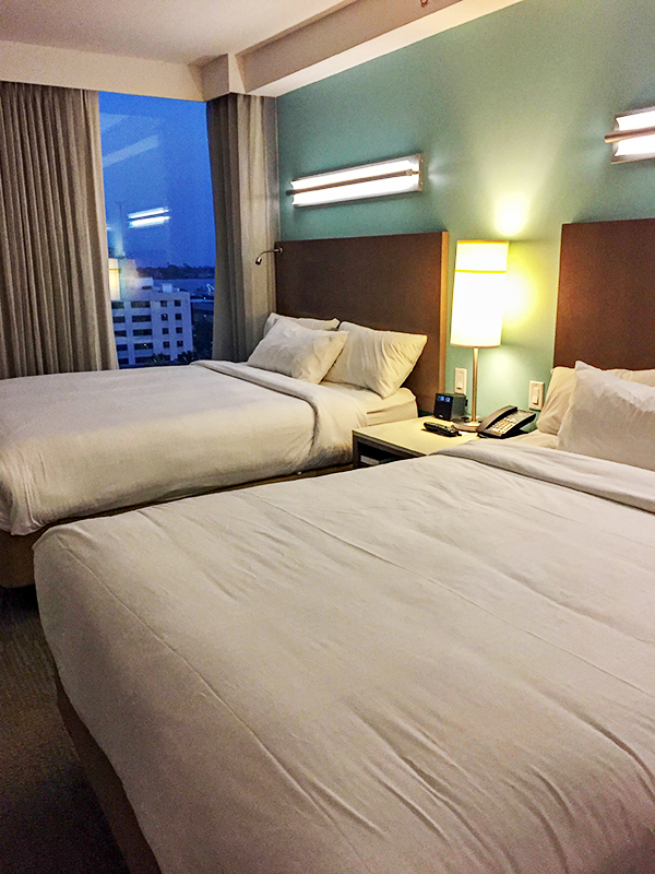It’s worth noting that while we stayed at this hotel near Comic-Con time, we didn’t actually book this hotel through the hotel lottery system. As you’ll see, we stayed in a room with 2 queen beds + a sofabed, which seem to be harder to reserve during the hotel lottery. This is not to say that you can’t book a room with 2 queens beds during Comic-Con, but in our experience, we’ve seen the rooms with 1 King Bed + a sofabed more often as part of the lottery.