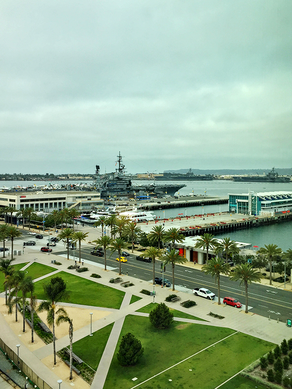 I love rooms with ceiling-to-floor windows, which this hotel does have, giving us a nice view of the bay and the USS Midway. I’m not sure if all rooms can see the water, but our room was on a higher floor and closer to the bay than some of the other room locations.